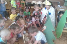 Икенче кечкенәләр төркеме балалары "Йомры күмәч" рус халык әкиятен сәхнәләштерделәр. Тәрбияче эшчәнлекне тәкъдим итте, ә балалар рольләрне бүлештеләр, тамашачыларны чакырдылар. Кечкенә артистлар үз рольләрен бик тырышып уйнадылар. Әкият күңелле булды.