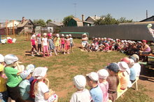 "Перетяни палку", "Бег с ведрами", "Бег в мешках", "Перетяни канат", "Бег с ложками"... Праздник прошел очень весело!