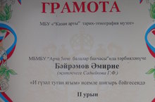 Бүген "Казан арты" тарих - этнография музеенда "И гъзщл туган ягым" дип исемләнгән шигырь бәйгесе үтте. Бакчабыздан Бәйрәмов Әмир һүм Гәйнетдинова Азалия бәйгедә катнашып дипломнарга һәм истәлекле бүләкләргә лаек булдылар.Котлыйбыз !!!