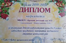 Поздравляем. Диплом за участие в районном конкурсе снежных фигур "Новогодний калейдоскоп" в рамках новогодних праздничных мероприятий. 14.01.2020