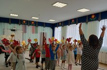 Мы с воспитанниками подготовительной группы сегодня учились слушать и слышать звуки природы, играли на музыкальных инструментах, провели беседу , вспоминали признаки осени, слушали шелест листьев, изучили танец с листьями.