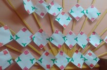 Максат:шакмаклы кәгазь кулъяулыкны татар халык бизәкләре (лалә чәчәге,өч яфрак)белән бизәргә өйрәтү.Матурлыкны күрә белергә өйрәтүне дәвам итү.Пумала Һәм клей белән эшләү алымнарын ныгыту.