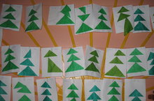Кисеп - ябыштыру.(2 нче кечкенәләр төркеме).Балаларда чыршы ясау теләге уяту.Киселгән үрнәкләрне дөрес итеп урнаштырырга, клей һәм салфетка белән чиста, пөхтә итеп эшләргә өйрәтү.