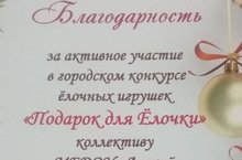 Сегодня 19 декабря в центральной библиотеке города Арск , состоялось награждение участников городского конкурса ёлочных игрушек «Подарок для Ёлочки», в котором «Арский детский сад № 8» был награждён благодарственным письмом. Там же , отдельно были отмечены наши педагоги: Гилязеева А.В. занявшая 1 место; Мубаракшина К.К и Давлетшина Г.Р. занявшие 2 места. Благодарим родителей и педагогов за активное участие. Желаем дальнейших творческих успехов!