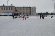 Гимназиянен хоккей мэйданчыгында балалар рэхэтлэнеп хоккей уйныйлар.Балалар рэхэтлэнеп саф хавада сэламэт яшэу рэвеше алып баралар.