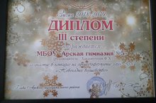 МБОУ - Арская гимназия №5 награждается Дипломом III степени за участие в конкурсе лучшее оформление город Арск "Новогоднее волшебство"