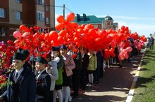 Зур Бирәзә башлангыч мәктәбе укучылары Боек Жиңүнең 73 еллыгына багышланган митингта. 07.05.2018