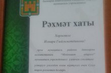 Гимназиянең 8Б сыйныфы укучысы Ильнара Гыйлметдинованы Арча муниципаль районы башкарма комитетының "Мәдәният идарәсе" муниципаль учреждениесе үзешчән сәнгатьне үстерүдә актив булганы өчен рәхмәт хаты белән бүләкләнде.