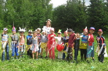 Сегодня в лагере прошел «День Индейца». Каждый отряд придумал название своего племени, нарядился в индейцев, разучил песню и исполнил танец своего племени. Этот день прошел в парке.