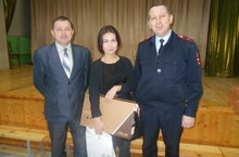 Начальник отделения ГИБДД отдела МВД России по Арскому району Натфуллин И.Р. поздравил Зарипову Зухру, ученицу 11а класса, ставшую победителем конкурса социальной рекламы "Безопасным дорогам скажем - Да" Всероссийского творческого конкурса по пропаганде безопасности дорожного движения "Радуга безопасности". Молодец!!!