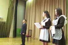 Учащиеся гимназии приняли участие в конкурсе чтецов "Вашей славы наследники мы", который прошел в рамках месячника "Память сердца священна" . 1 место заняли Зиннатова Алия, 3А класс, Минзянов Расим, 5В класс, Сафиева Алсина, 7А класс, Шамсутдинов Ришат, 9Б класс. Молодцы!