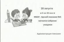 25 августа в 17.30 состоится собрание для родителей первоклассников