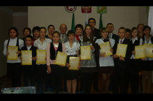 Нагуманову Эльвину ученицу 11В класса, Тухватуллина Булата ученика 10А класса, Даутова Расиля ученика 9В класса и учителя географии Хусаинову Н.Г.
