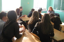 В актовом зале гимназии №5 представители Арской центральной библиотеки провели дискуссию "Полет в будущее" с учащимися 9-х классов. Библиотекари Галимова Альфия и Калимуллина Миляуша провели беседу на тему "Пиво - яд или..."