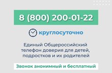 Единый Общероссийский телефон доверия 8(800)200-01-22