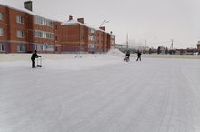Сегодня силами коллектива гимназии для игры учеников и их родителей в хоккей была организована очистка хоккейной коробки от снега.