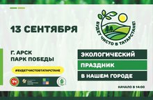 Друзья, ждём всех всех от мала до велика 13 сентября в Парке Победы принять участие в экологическом празднике "Будет чисто в Татарстане!". От 14.00 до 18.00 для вас будут работать игровые площадки, будут ждать интерактивные развлекательные игры, мастер-классы, праздничный концерт. Ну и конечно же, не забывайте о самом главном, здесь будет работать пункт приёма второсырья. Приносите с собою макулатуру, пластик, ненужные предметы быта (игрушки, сувениры) в хорошем состоянии. Вместе сделаем наш мир чище!