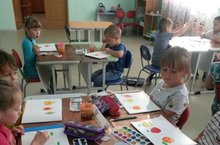 Төсләр турында... 17.10.2018 Яшелчә һәм җиләк - җимешләрнең формаларын һәм төсләрен ачыкладык. Һәм төрле төстәге алмалар ясадык. Балаларда дөрес күзаллау булдырылды.