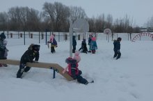 Физкультура шөгылендә 25.01.2018 Саф һавада физкультура шөгылен балалар көтеп алалар. Чөнки безнең бик матур спорт мәйданчыгыбыз да бар. Анда баскетбол, волейбол уйныйбыз. Әкренләп турникта да күтәрелергә өйрәнәбез