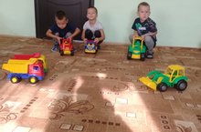 Цель: Учить детей объединяться в группы по 2-3 ребенка для самостоятельных игр. Закрепить знания детей о грузовых машинах.