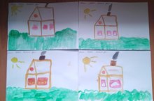 Учить самостоятельно подбирать сочетание красок при рисовании, передавать основные части дома: стены, крышу, окно; закрепление знаний геометрических фигур.