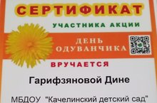 Нашей воспитаннице вручается сертификат за участие в акции "День одуванчика"