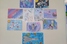 Организована выставка рисунков "Космическое путешествие" 04.04.2023
