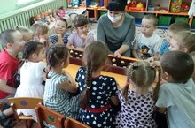 Безгә кунакка китапханәче килде. Ул безгә китаплар күрсәтте, яңа әкиятләр укыды. Балалар әкиятләр буенча пазллар төзеделәр.