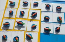 Учить детей лепить маленького человека: голова - шар, руки - палочки. Учить составлять изображение из частей.