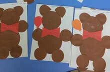 Бүген без балалар белән "Аю" кисеп, ябыштырдык. Башта төрле размерда түгәрәк кистеләр, аннары шуларны ябыштырдылар.