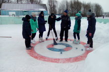 Укучыларыбыз мәктәп янындагы катокта кёрлинг уены серләренә төшенә.