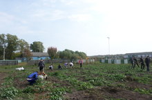 Укучылар мәктәп ярминкәсендә сату өчен бакчада яшелчәләр, җиләк- җимешләр әзерлиләр.