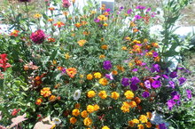 Яшелчә, җиләк- җимеш белән беррәттән чәчәк үстерүгә дә зур игътибар бирелә. Мәктәп яны чәчәккә күмелде.