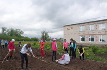 Мәктәп бакчасында укытучылар һәм укучылар тырышып эшлиләр. Бакчага кишер, чөгендер, бәрәңге, суган утыртылды.