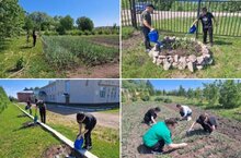 Укучыларыбыз белән бергәләп мәктәп территориясен тәртиптә тотабыз.