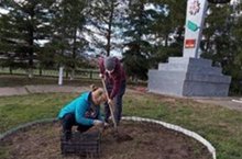 Сегодня были возложены венки "К памятнику воинам-односельчанам, погибшим в годы ВОВ".