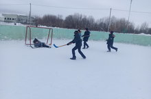После уроков ученики начальных классов играют в хоккей с мячом...