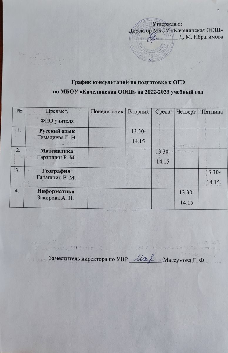 График консультаций на 2022/2023 учебный год (9 классы)