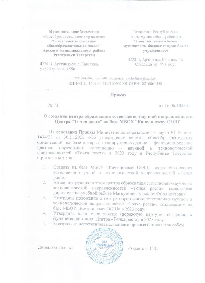 - Приказ об утверждении типового положения о центре образования естественно-научной и технологической направленностей "Точка роста", создаваемом на базе общеобразовательной организации Республики Татарстан в 2023 году