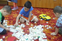 Балалар буш вакытларында хәрефле шакмаклардан сүзләр төзеп уйныйлар. Алар ярыша - ярыша үзләренең исемнәрен төзиләр.