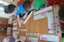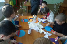 Бүген зурлар төркеме балалары кисеп - ябыштыру белән шөгыльләнделәр. Алар берсеннән- берсе матур итеп көймәләр ясадылар, һәм шул көймәләрен зәңгәр диңгезгә " җибәрделәр ".
