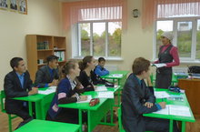 Учитель татарского языка Габдрахманова Л.М. проводит консультацию в 9 классе по татарскому языку. Учащиеся готовятся к ОГЭ.