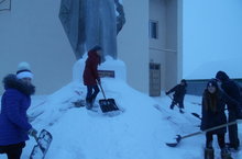 Бүген 9 нчы сыйныф укучылары дәресләрдән соң мәдәният йорты каршында урнашкан Бөек Ватан сугышында һәлак булган авылдашларыбызга куелган һәйкәл янын кардан чистарттылар.