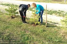 Агач утырту 29.09.2015 Мәктәп территориясен яшелләндерүне дәвам итәбез.Бүген укучылар яшь агач үсентеләре утырттылар.