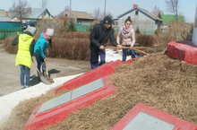 Бөек Җиңүнең 70 еллыгына багышланган чаралар дәвам итә. Бүген мәктәп укучылары Бөек Ватан сугышында һәлак булган авылдашларыбыз истәлегенә куелган һәйкәл янын җыештырдылар.
