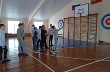 Мәктәбебездә хәрби-патриотик айлык дәвам итә. 13.02.2023. Противогаз кию I - Кударов И. 9 класс, II - Ахметханов К. 9 класс, III - Таланов И. 8 класс.