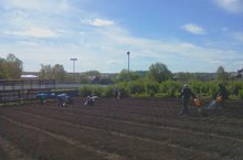 Уку һәм эш чиратлашып бара. Бүген дә бакчада язгы эшләр дәвам итә. Укучылар-укытучылар технология дәресләрендә бакчада җир казыйлар, тырмалыйлар, үсемлекләргә су сибәләр.