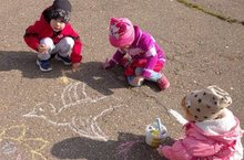 Көзнең матур көнендә нәниләребез белән асфальтка төрле сурәтләр ясадык. Бик теләп,тырышып ясадылар.