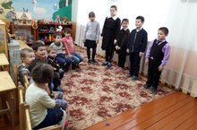 Бүген безгә башлангычта укучы абый-апаларыбыз,укытучылары Рания апа һәм Рәмзия апа белән кунакка керделәр.Беренче класс укучылары мәктәп тормышы турында сөйләделәр. Ә нәни дусларыбыз үзләренең эшләре, уеннары, ничек итеп бәйрәмгә хәзерләнүләре турында матур итеп сөйләп бирделәр. Ахырдан табышмакларга җаваплар таптылар, шигырьләр укыдылар.