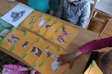 Максат:1) балаларның йорт хайваннары (сыер, ат,кәҗә, сарык) турындагы белемнәрен (кайда яшиләр, нәрсә ашыйлар, нәрсә дип кычкыралар), кыргый җәнлекләр (аю, куян, керпе, төлке) турындагы белемнәрен киңәйтү һәм ныгыту, хайваннарны таный һәм исемнәрен, хәрәкәтләрен әйтергә күнектерү;